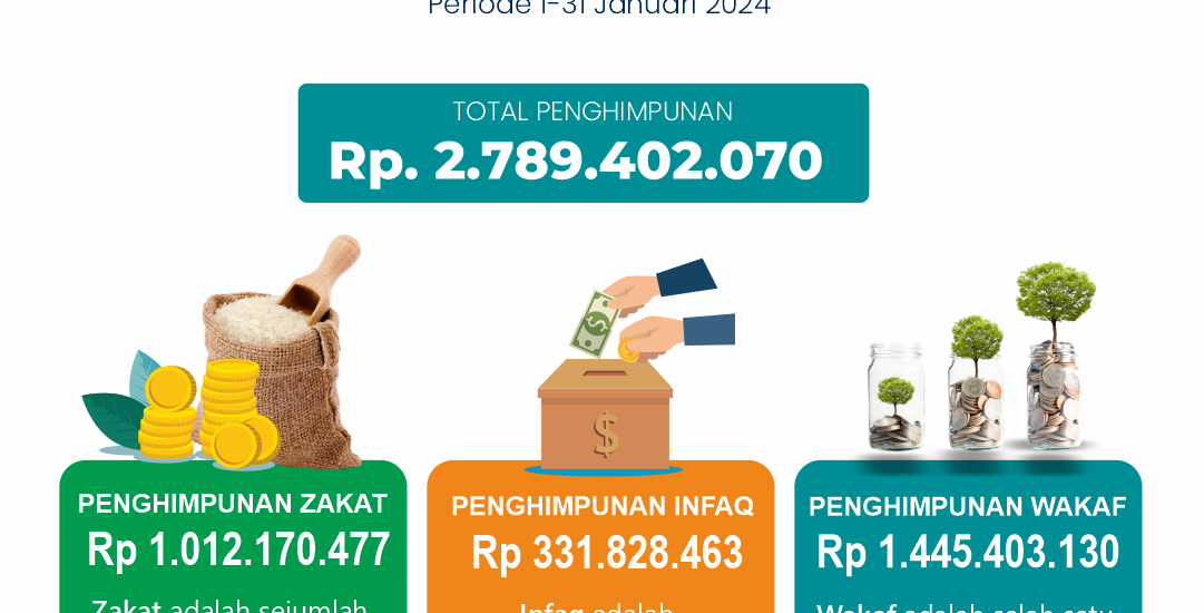 Berikut kami sampaikan Laporan Penghimpunan dan Pentasyarufan ZISWAF Bulan Januari 2024
