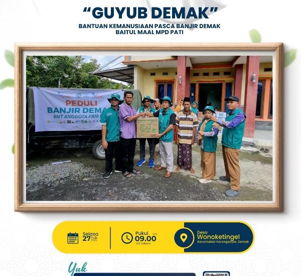 Pada Selasa, 27 Februari 2024, ULAZ MKU Fastabiq (BMT Fastabiq) bersama Forum Baitul Maal MPD Pati telah melaksanakan kegiatan bakti sosial di desa terdampak banjir, yaitu Desa Wonoketingal yang terletak di Kecamatan Karanganyar, Kabupaten Demak, Jawa Tengah.