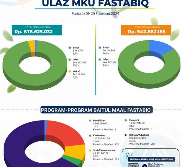 Berikut kami sampaikan Laporan Penghimpunan dan Pentasyarufan ZISWAF Bulan Februari 2024
